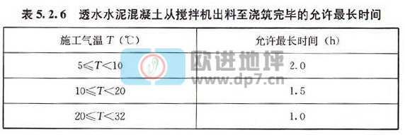 5.2.5透水水泥混凝土拌合物運(yùn)輸時(shí)應(yīng)防止離析,并應(yīng)注意保持拌合物的濕度,必要時(shí)應(yīng)采取遮蓋等措施。