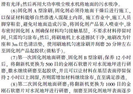 關(guān)鍵詞:工藝流程;施工控制要點(diǎn);耐磨地坪;密封固化劑