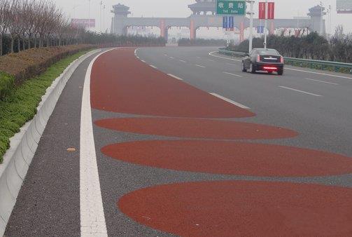 目前道路顏色不是白色就是黑色,長時間注視單調(diào)的黑色路面會使駕駛員注意力變得遲鈍,誘發(fā)疲勞,甚至昏昏欲睡,使發(fā)生交通事故的危險性增大。在路面適當部位著色,可以改善駕駛員的視覺環(huán)境,提醒駕駛員注意特殊路段,刺激駕駛員的神經(jīng)系統(tǒng),有助于駕駛員保持清醒的駕駛狀態(tài)。例如:在陡坡、轉(zhuǎn)彎和限速區(qū)鋪裝黃色路面,則會提高駕駛員的警惕性;在交叉口、居民密集點和停車點附近鋪裝紅色路面,駕駛員則會小心謹慎;在學校、醫(yī)院等處鋪裝藍色路面,表示安靜,則駕駛員就會放輕機器聲并不鳴喇叭。另外合理設(shè)計路面色彩的變化,則直線段長些也不會影響安全效果,還會縮短到達目的地的距離,降低工程造價,減少運行時間。