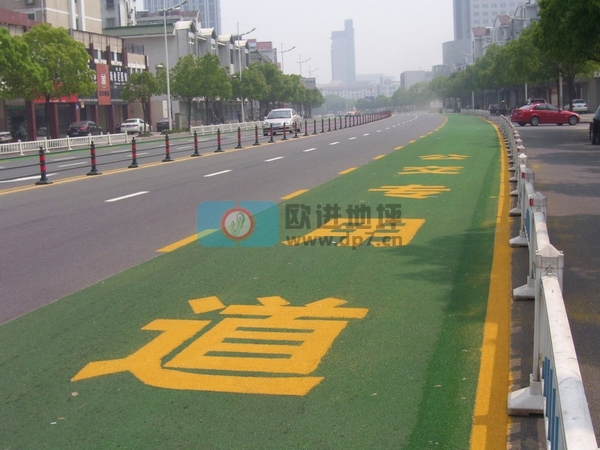 敷于瀝青路面或水泥路面形成磨耗層,使路面色彩賞心悅目,同時(shí)還具有耐磨耗和防滑效果。因噴涂的的厚度一般為3-5mm,所以也叫薄層鋪裝路面、彩色防滑路面、薄層防滑路面。也有使用油漆、涂料等彩色溶劑噴涂在路面上形成的彩色路面,因其不能改善路面性能而沒有推廣開來(lái)。