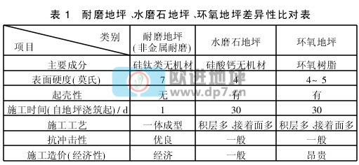 耐磨地坪、水磨石地坪、環(huán)氧地坪差異性對比表